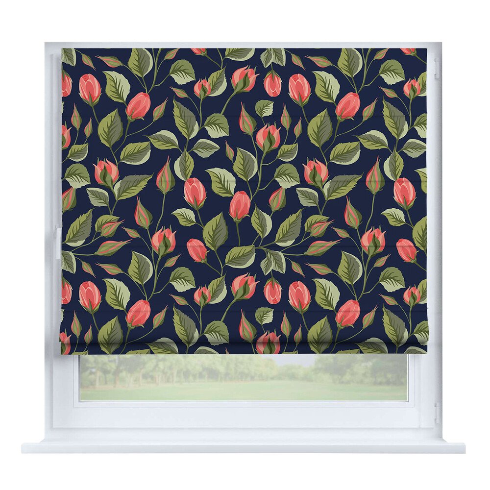 Римская штора для проёма лён димаут тёмно-зелёный, карниз верёвочный